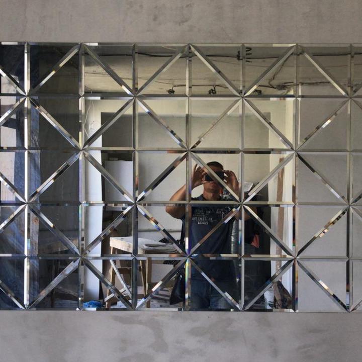 Использована зеркальная квадратная и треугольная плитка с фацетом.