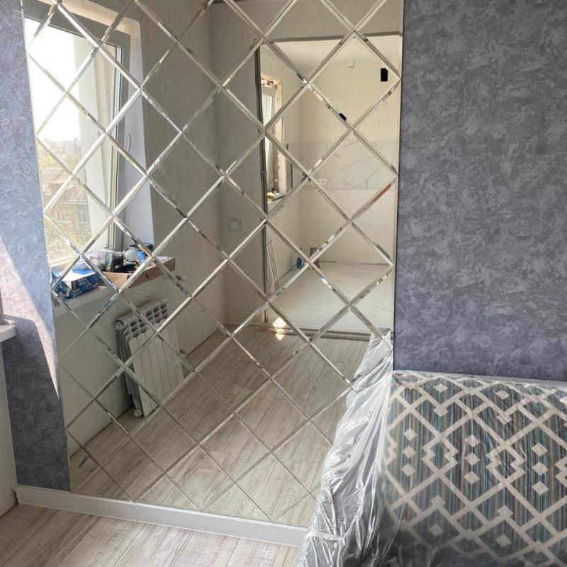 Использована зеркальная серебряная плитка квадратной формы, размером 18х18.