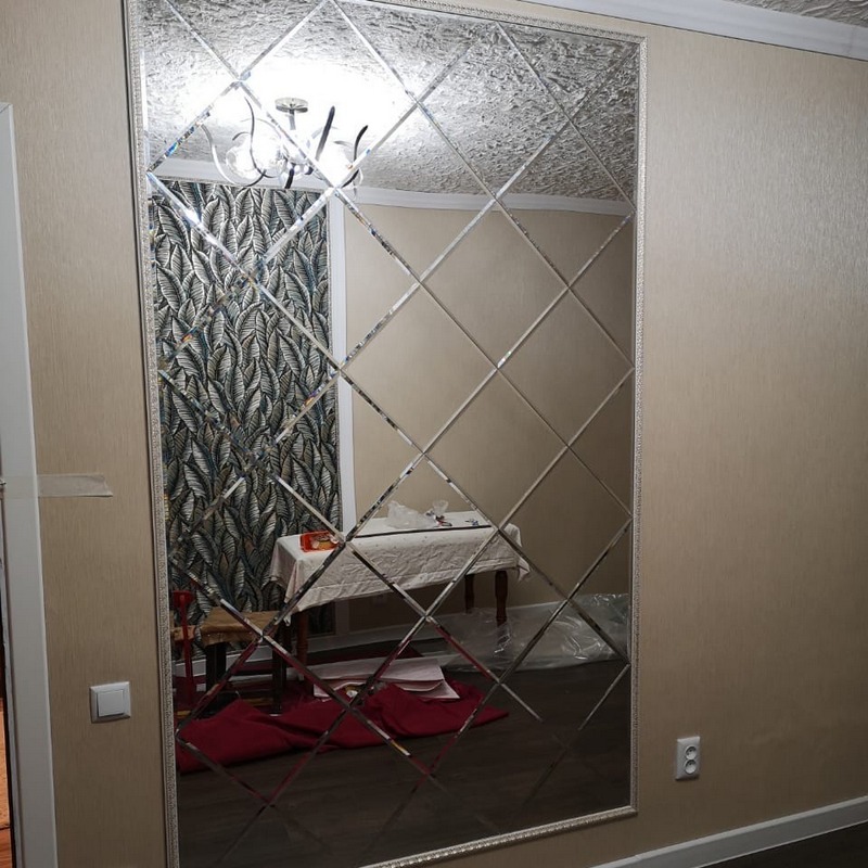Использована зеркальная квадратная плитка с фацетом.